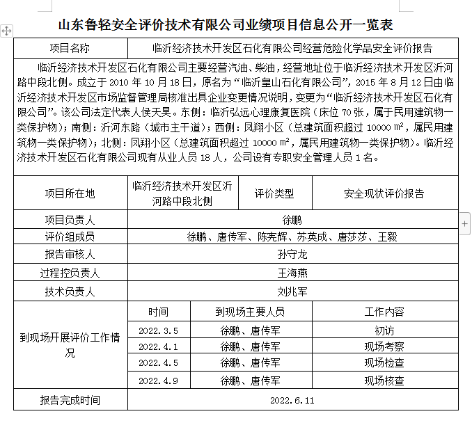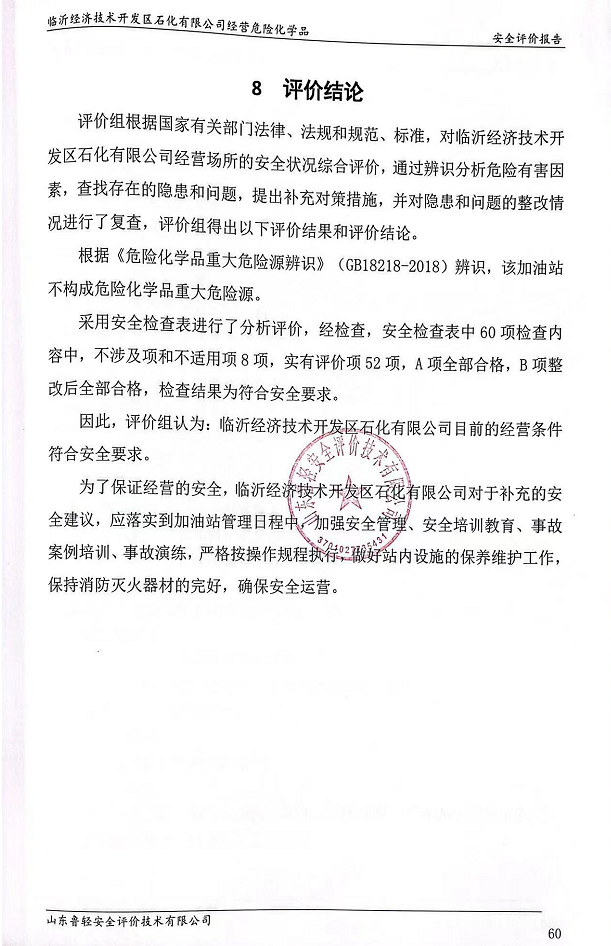 临沂经济技术开发区石化有限公司经营危险化学品安全评价报告