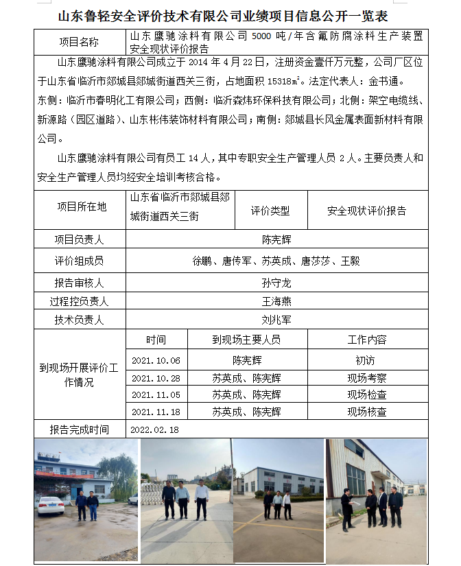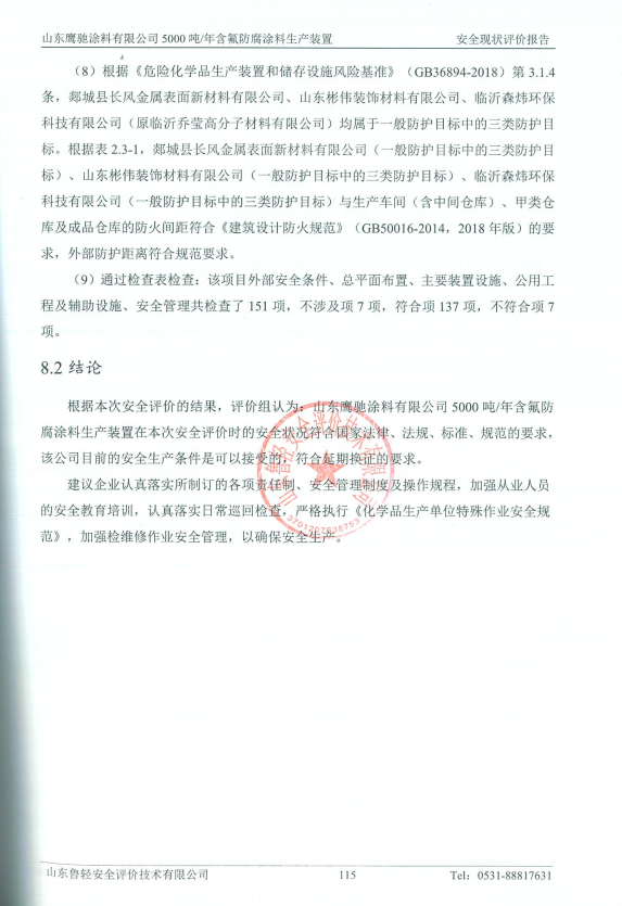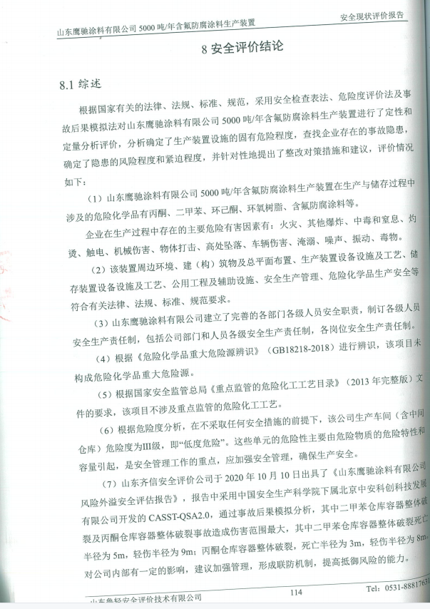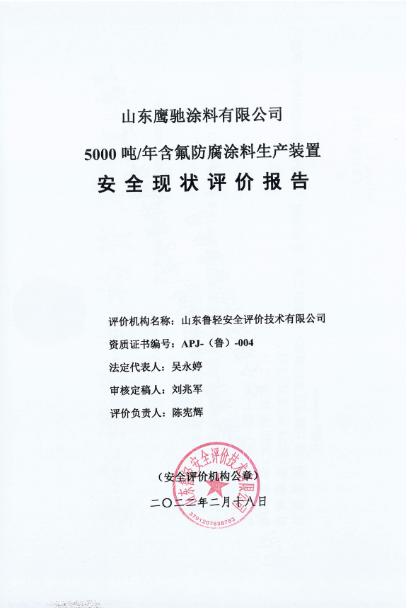 山东鹰驰涂料有限公司5000吨/年含氟防腐涂料生产装置安全现状评价报告