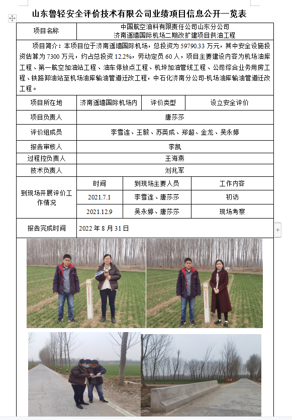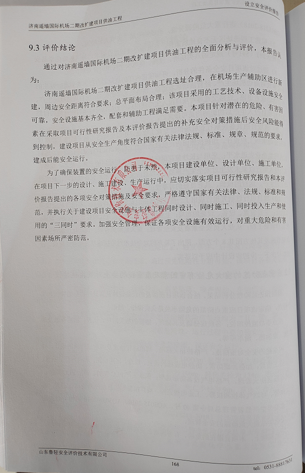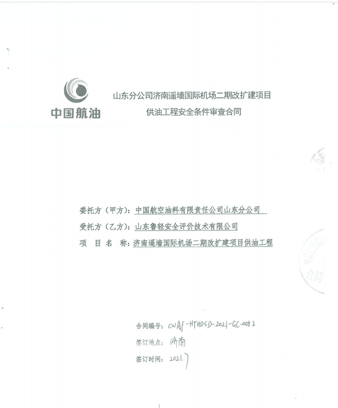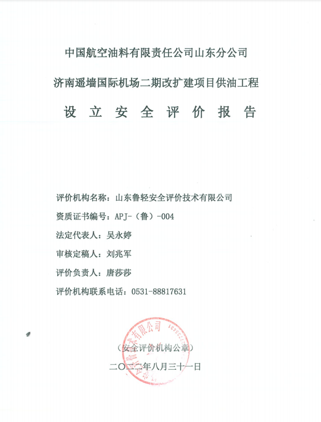 中国航空油料有限责任公司山东分公司济南遥墙国际机场二期改扩建项目供油工程