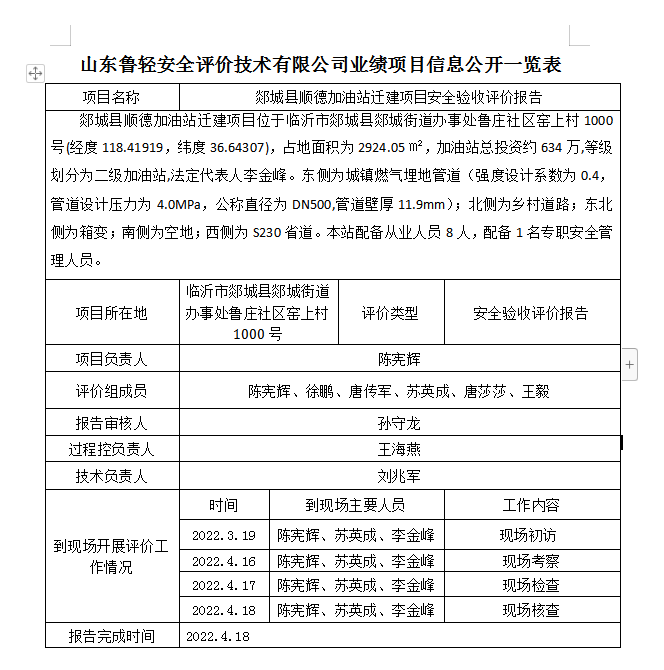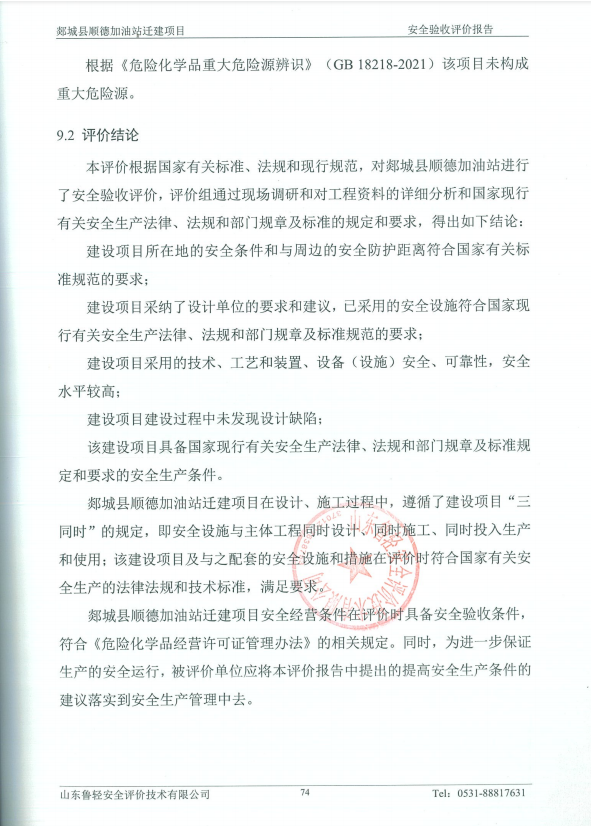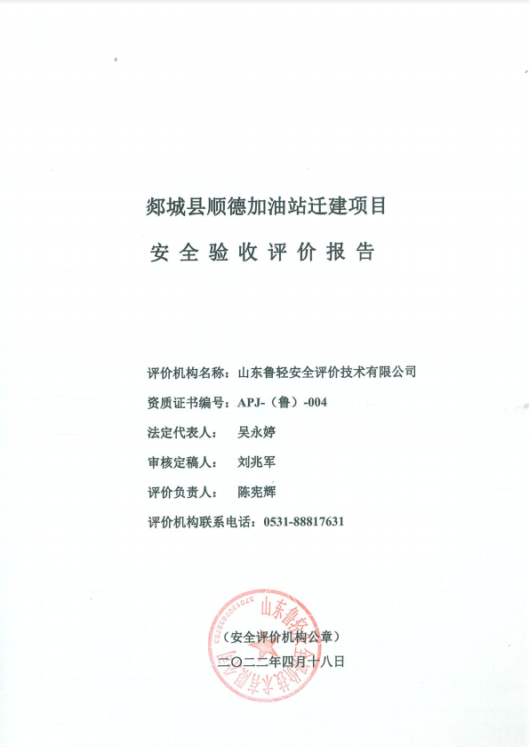 郯城县顺德加油站迁建项目安全验收评价报告