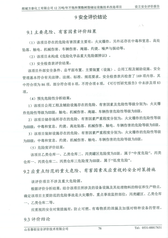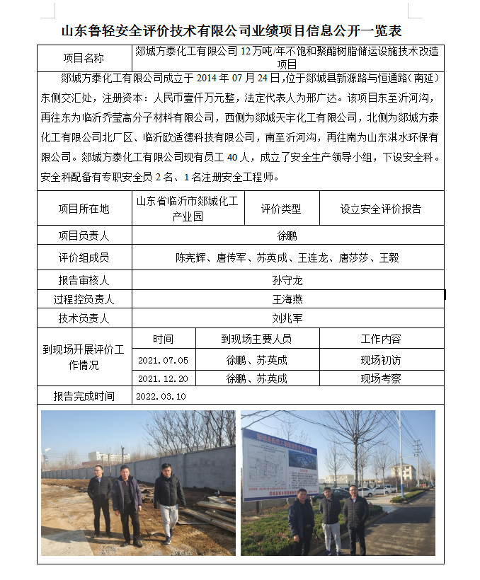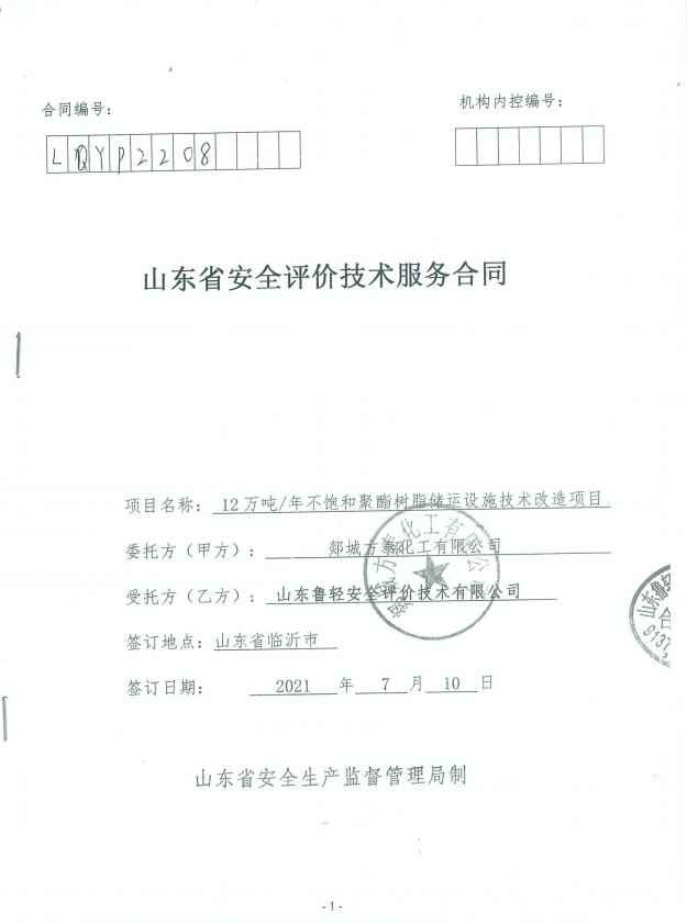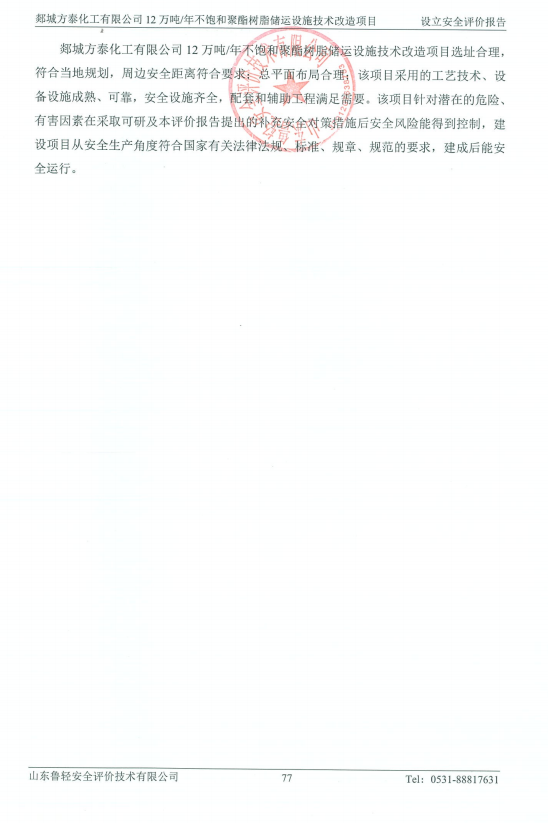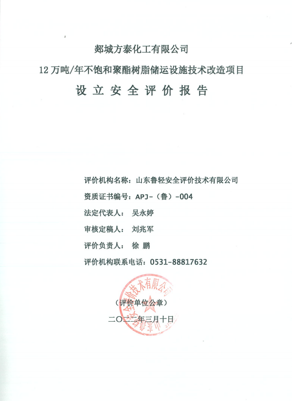 郯城方泰化工有限公司12万吨/年不饱和聚酯树脂储运设施技术改造项目