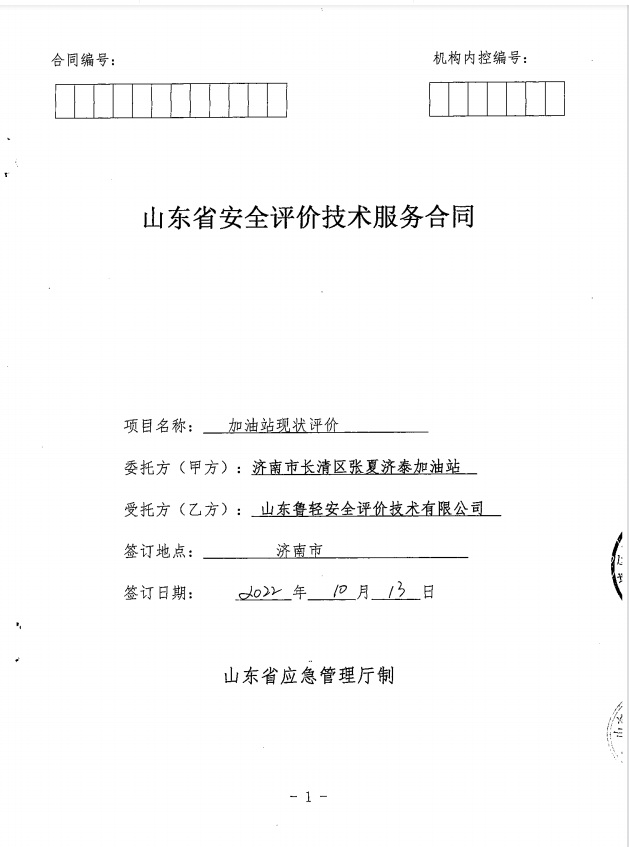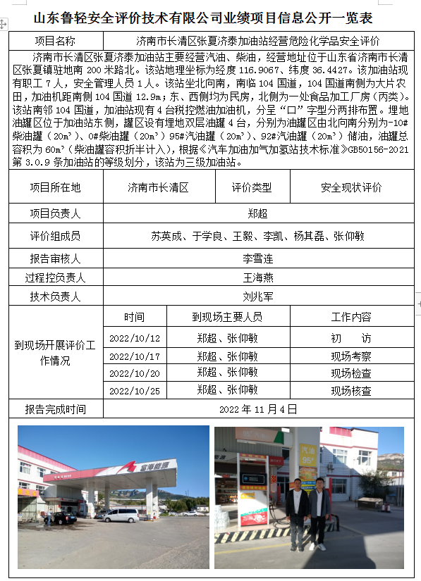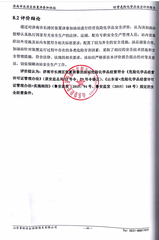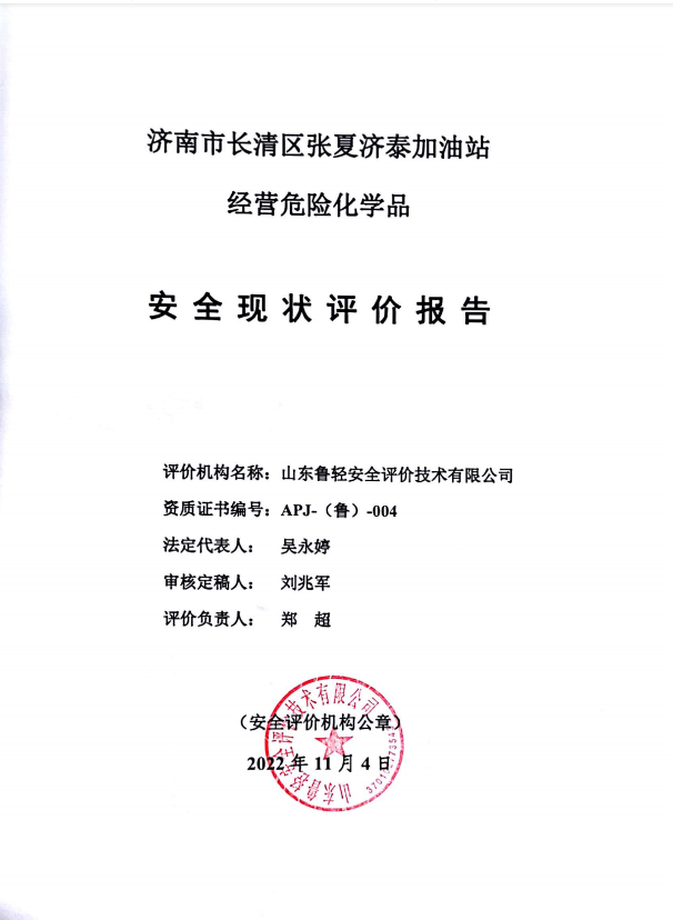 济南市长清区张夏济泰加油站经营危险化学品安全评价