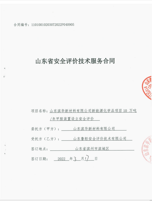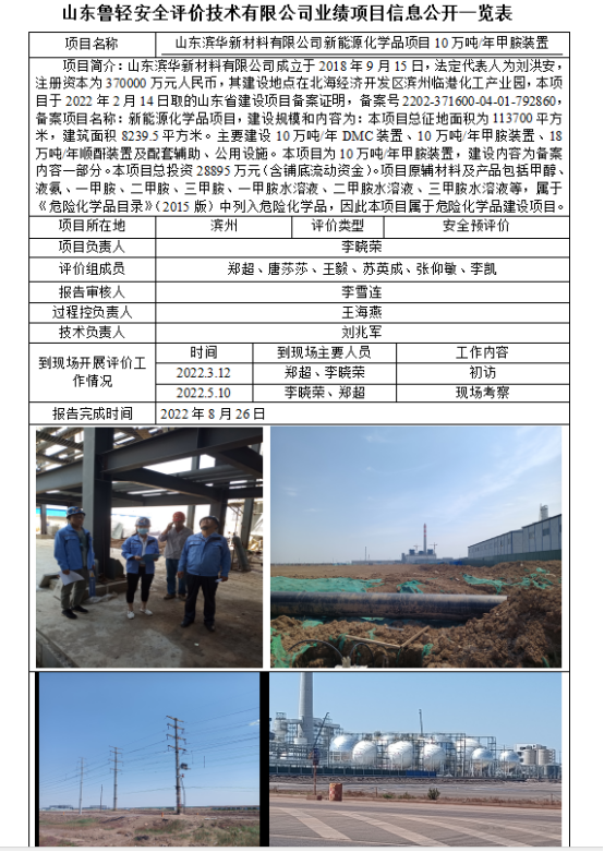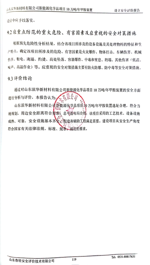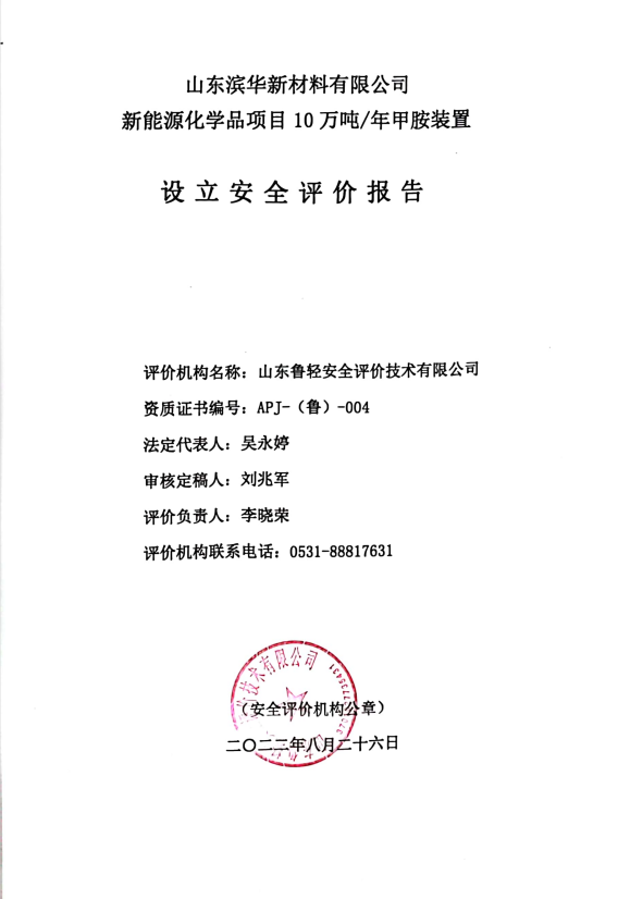 山东滨华新材料有限公司新能源化学品项目10万吨/年甲胺装置