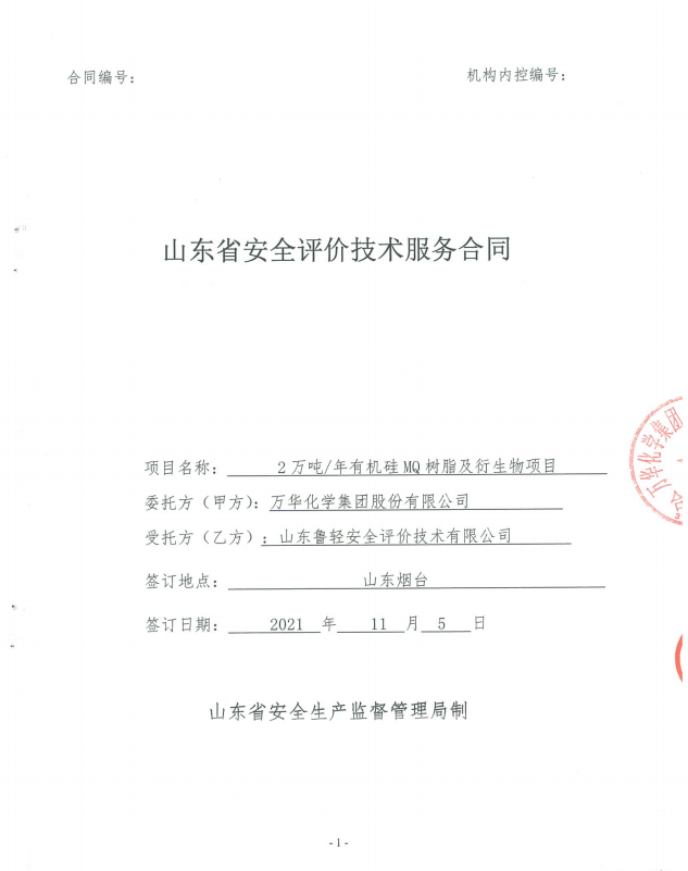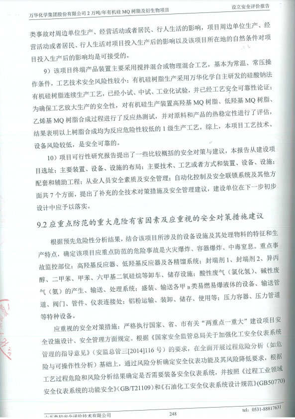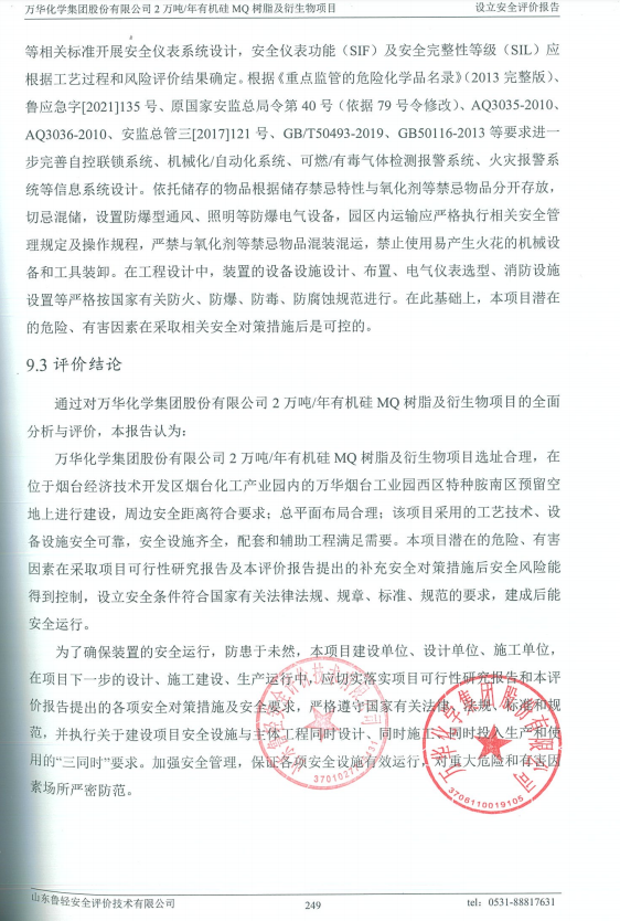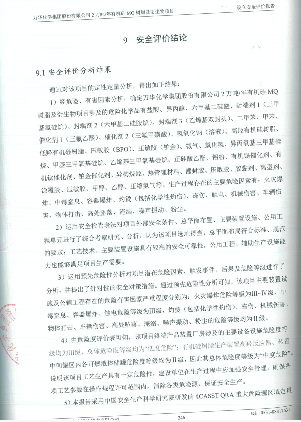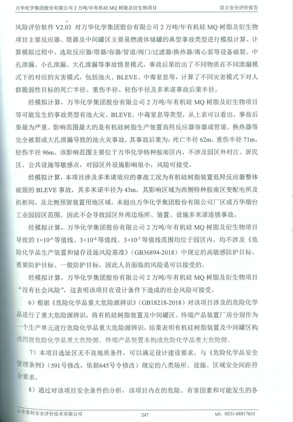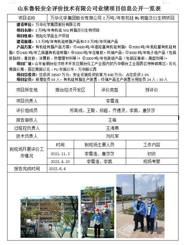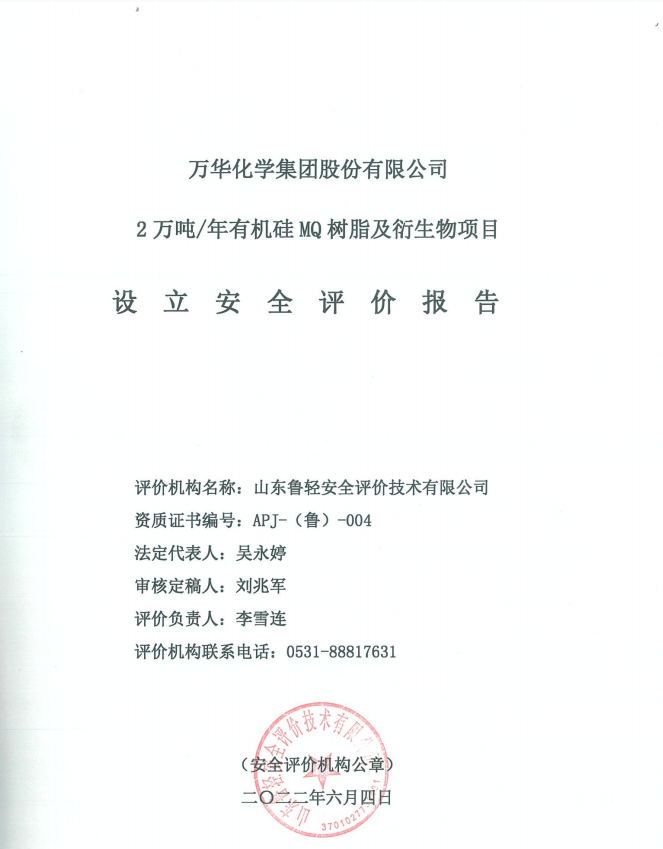 万华化学集团股份有限公司2万吨/年有机硅MQ树脂及衍生物项目