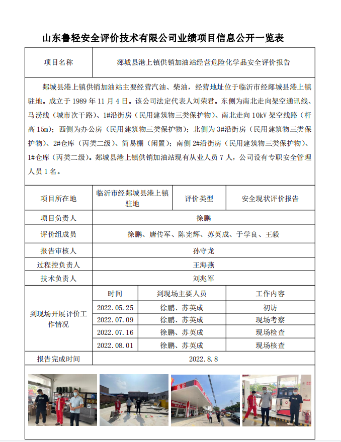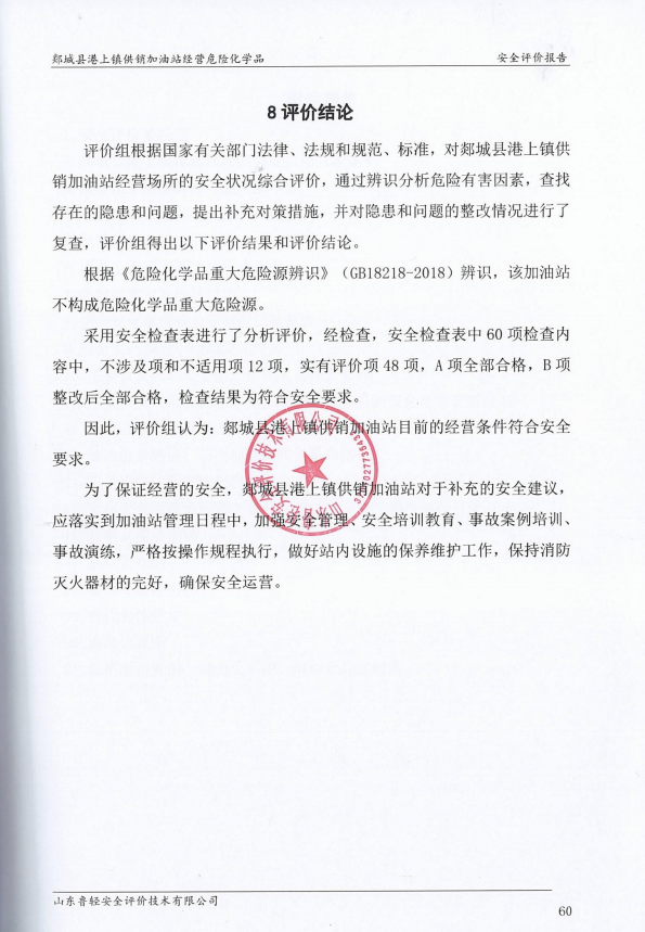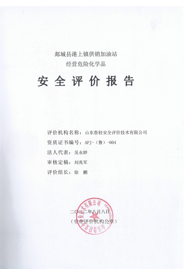 郯城县港上镇供销加油站经营危险化学品安全评价报告