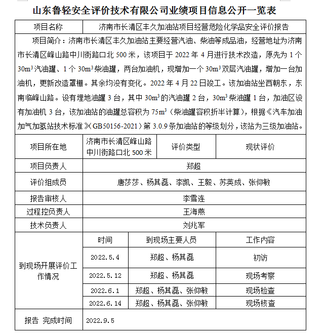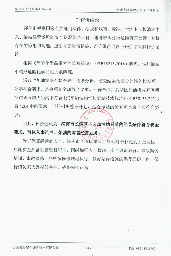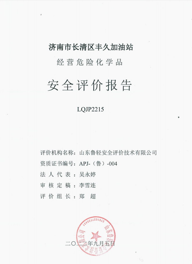 济南市长清区丰久加油站项目经营危险化学品安全评价报告