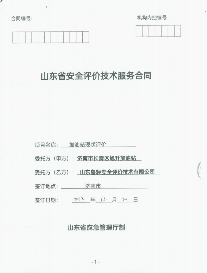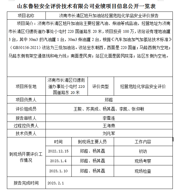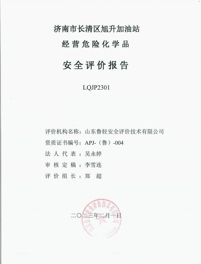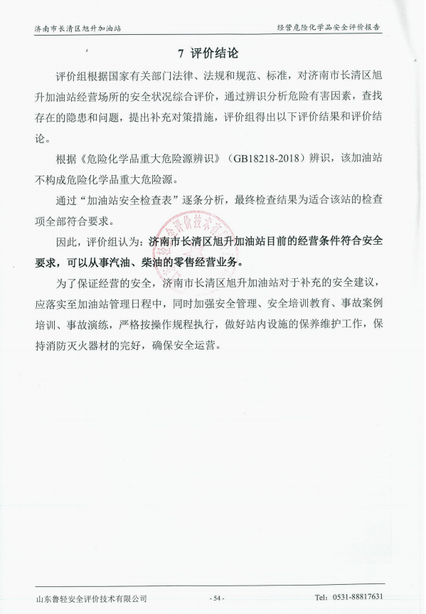 济南市长清区旭升加油站经营危险化学品安全评价报告