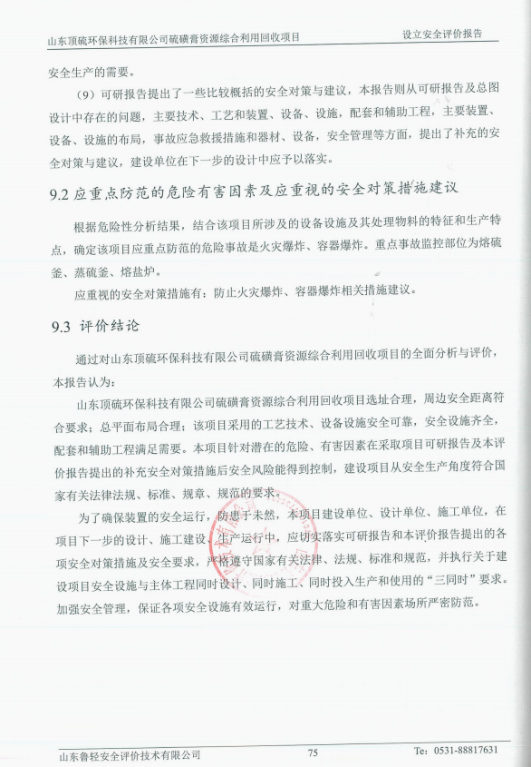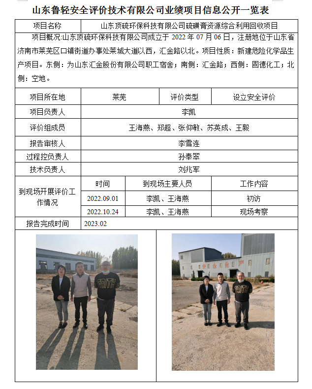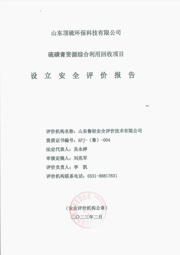 山东顶硫环保科技有限公司硫磺膏资源综合利用回收项目