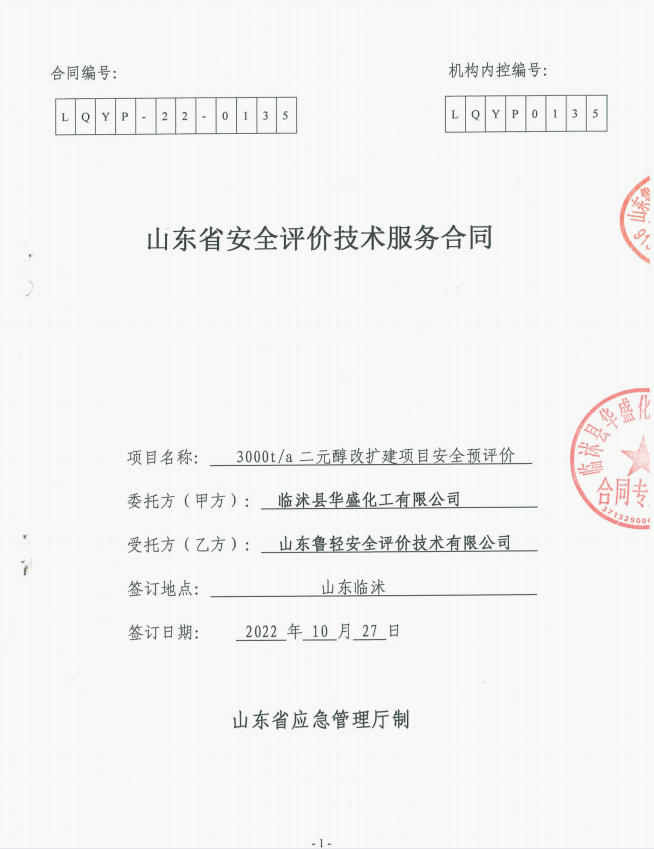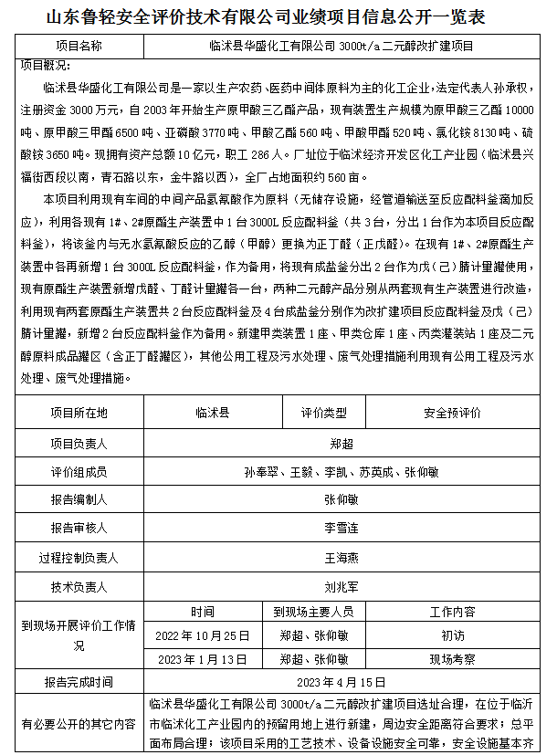 临沭县华盛化工有限公司3000t/a二元醇改扩建项目