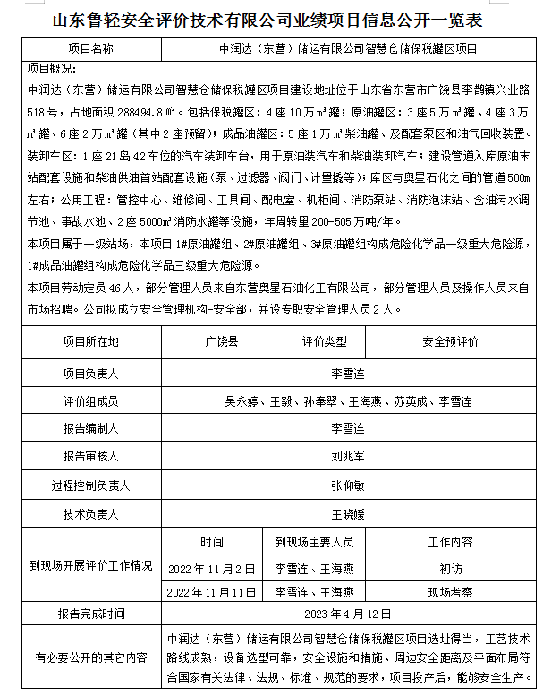 中润达(东营)储运有限公司智慧仓储保税罐区项目