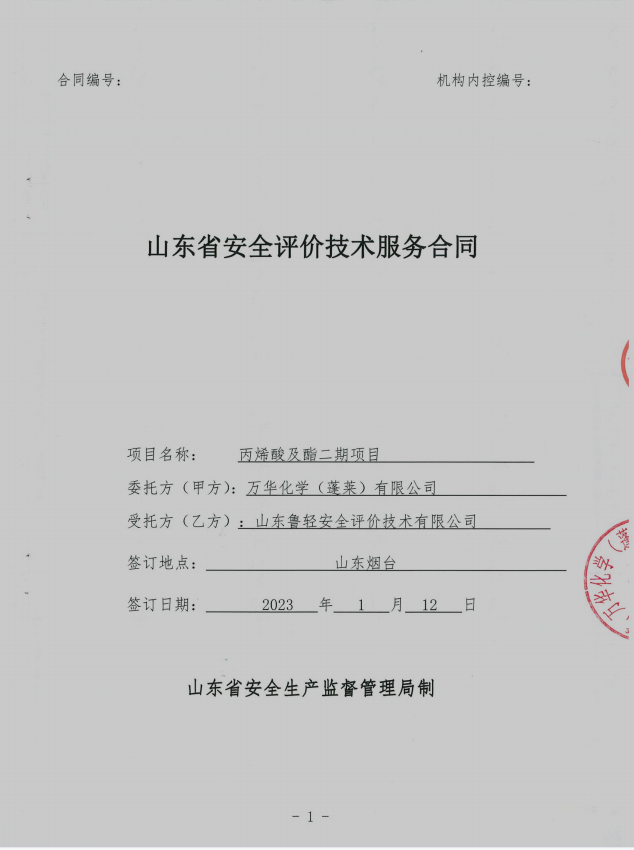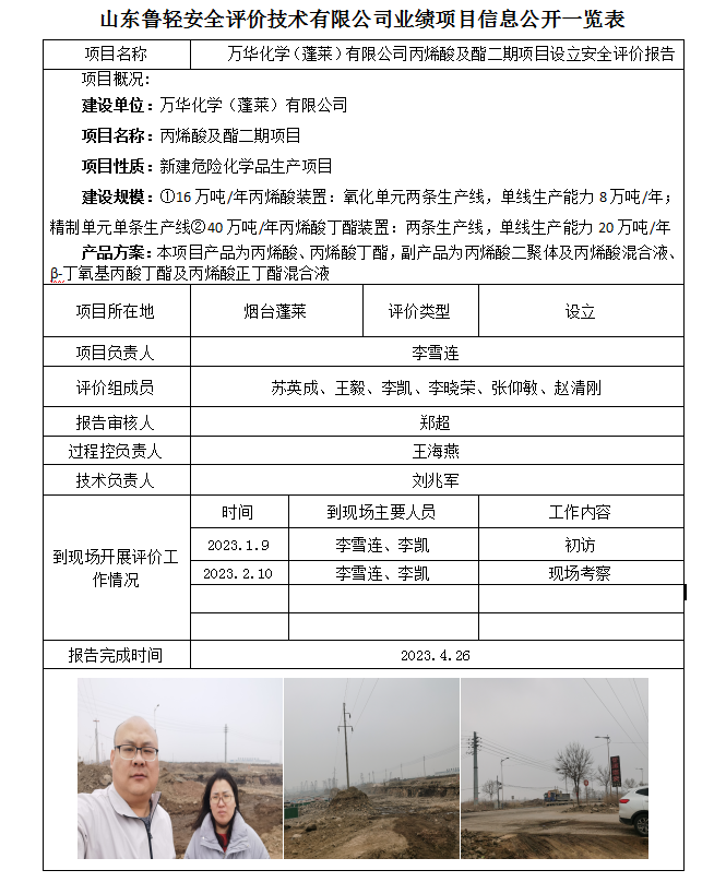 万华化学(蓬莱)有限公司丙烯酸及酯二期项目设立安全评价报告