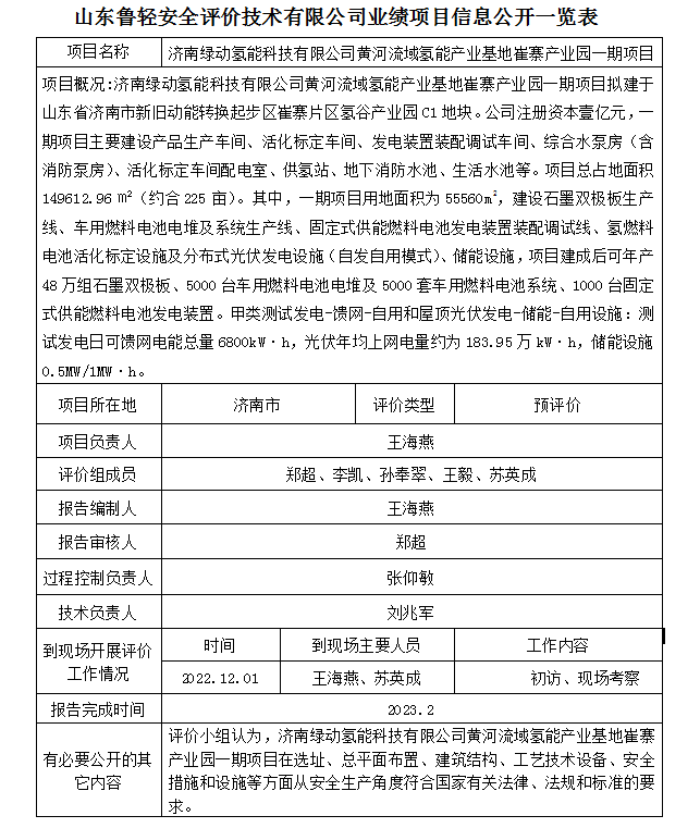 济南绿动氢能科技有限公司黄河流域氢能产业基地崔寨产业园一期项目