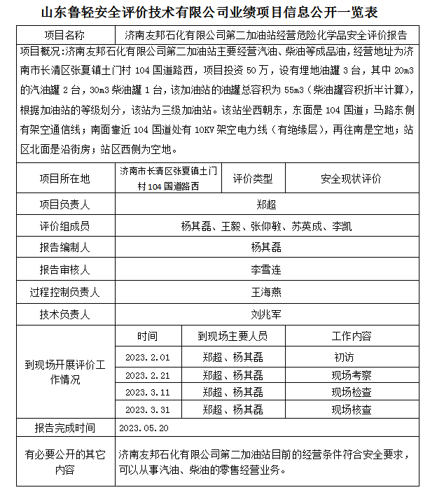 济南友邦石化有限公司第二加油站经营危险化学品安全评价报告