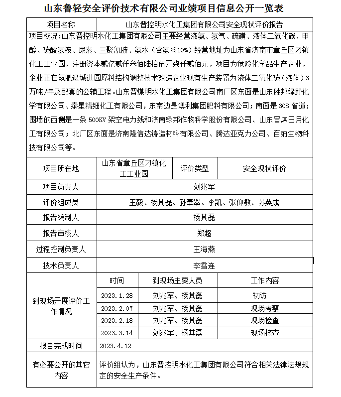 山东晋控明水化工集团有限公司安全现状评价报告