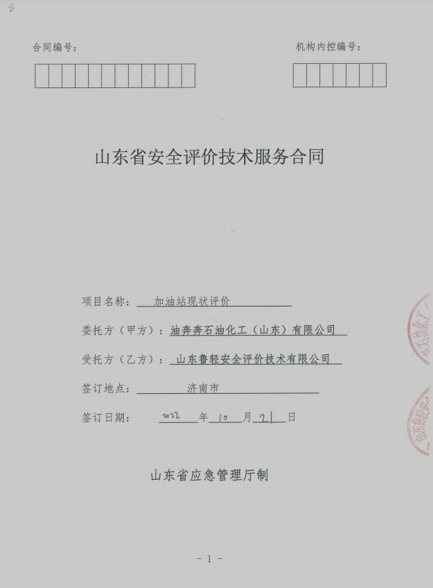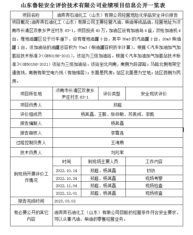 油奔奔石油化工(山东)有限公司经营危险化学品安全评价报告