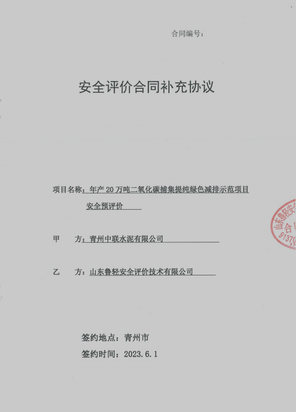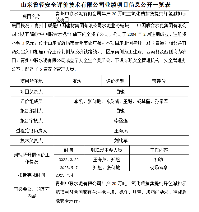 青州中联水泥有限公司年产20万吨二氧化碳捕集提纯绿色减排示范项目