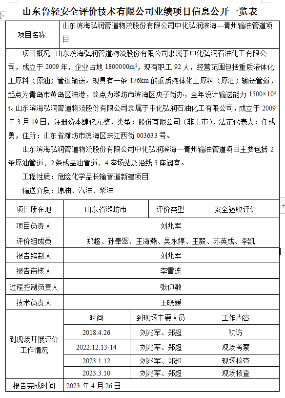 山东滨海弘润管道物流股份有限公司中化弘润滨海—青州输油管道项目