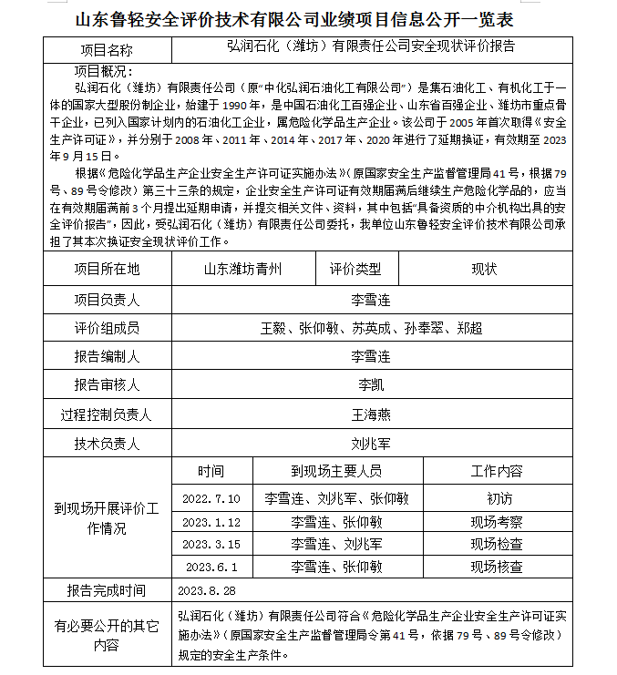 弘润石化(潍坊)有限责任公司安全现状评价报告