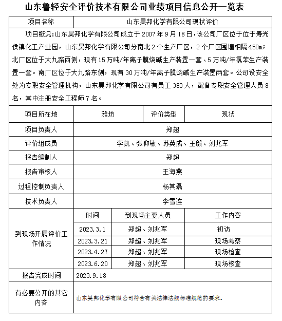 山东昊邦化学有限公司现状评价