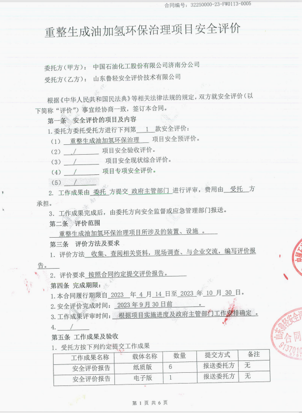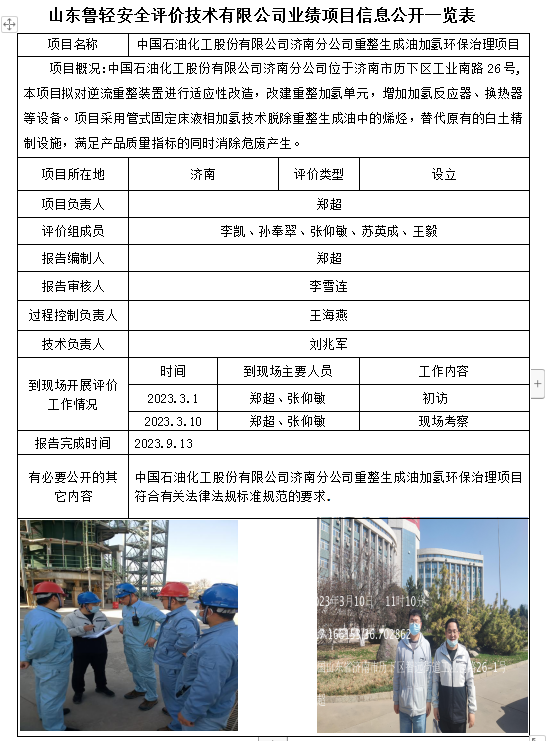 中国石油化工股份有限公司济南分公司重整生成油加氢环保治理项目