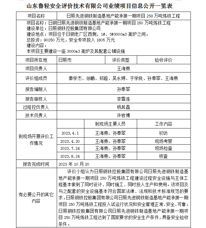 日照先进钢铁制造基地产能承接一期项目250万吨炼铁工程