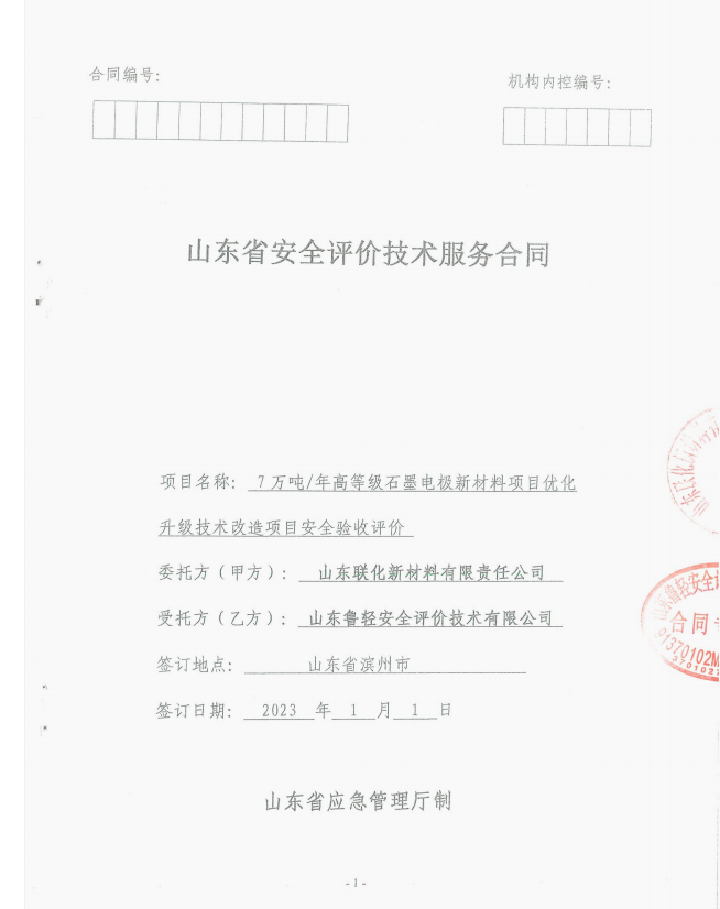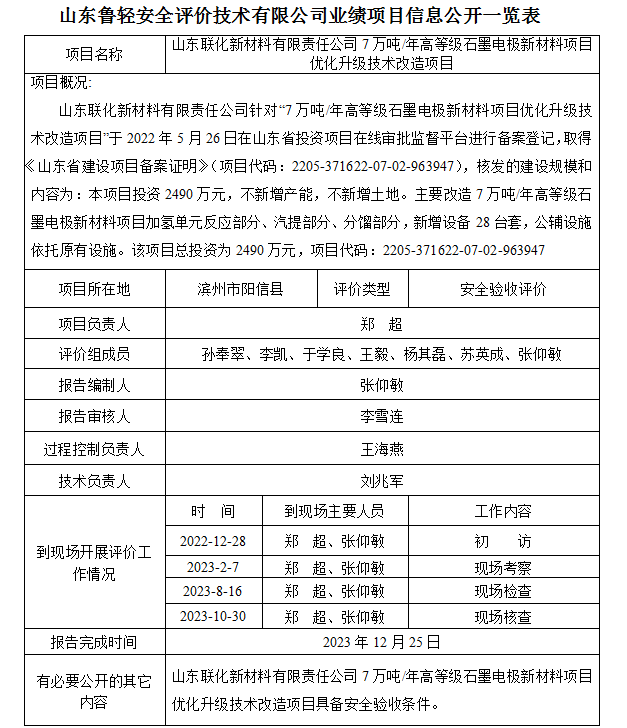 山东联化新材料有限责任公司7万吨/年高等级石墨电极新材料项目优化升级技术改造项目