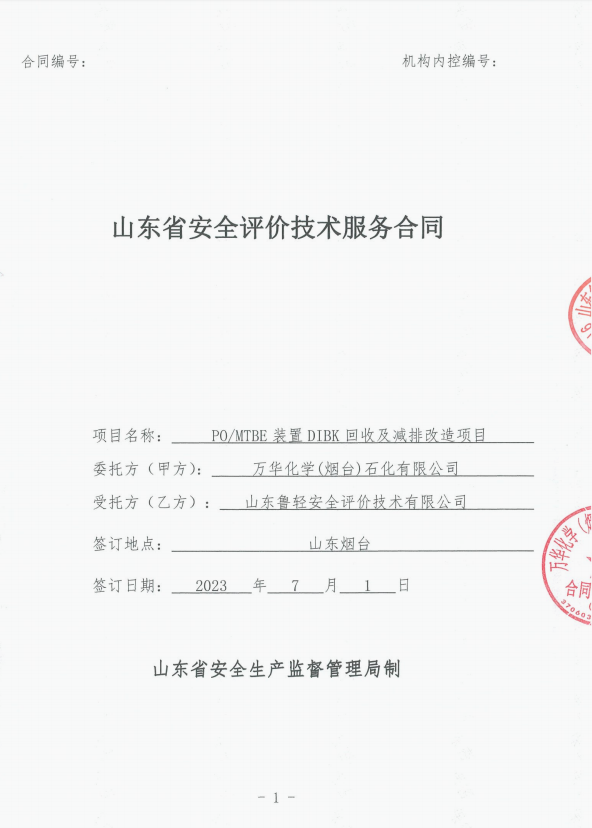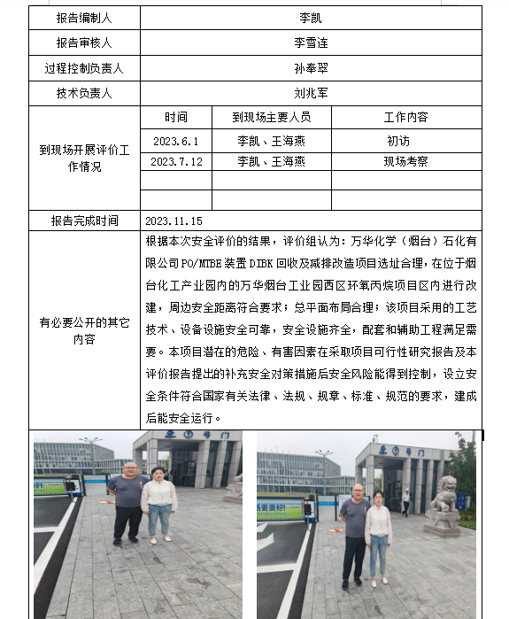 万华化学(烟台)石化有限公司PO/MTBE装置DIBK回收及减排改造项目设立安全评价报告