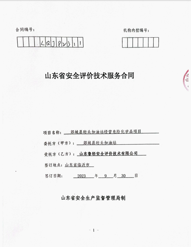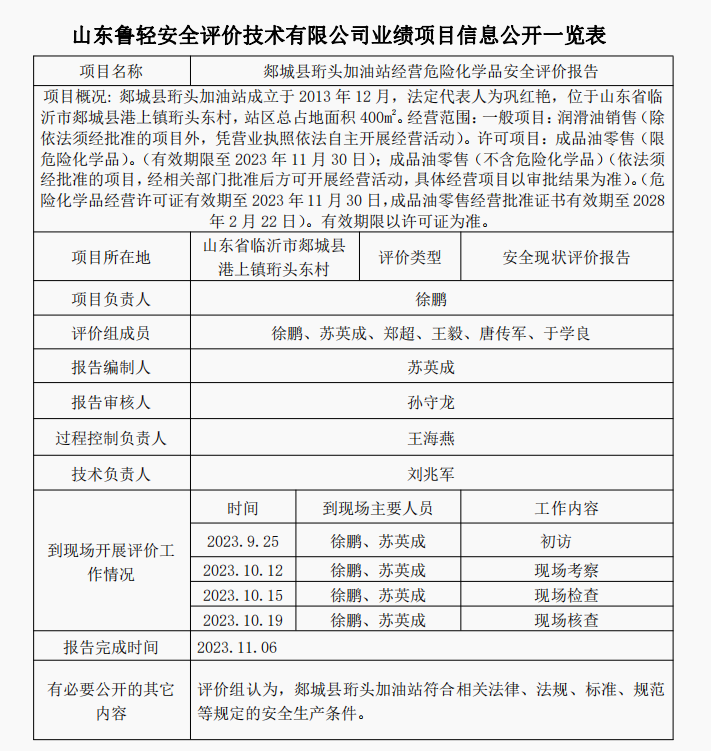 郯城县珩头加油站经营危险化学品安全评价报告