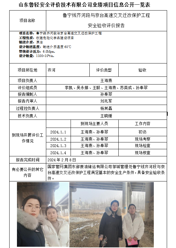 鲁宁线齐河段与京台高速交叉迁改保护工程安全验收评价报告