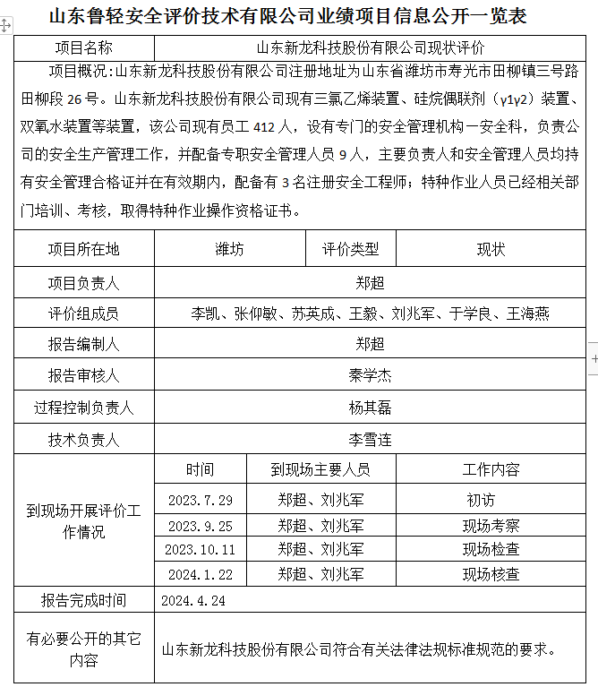 山东新龙科技股份有限公司现状评价