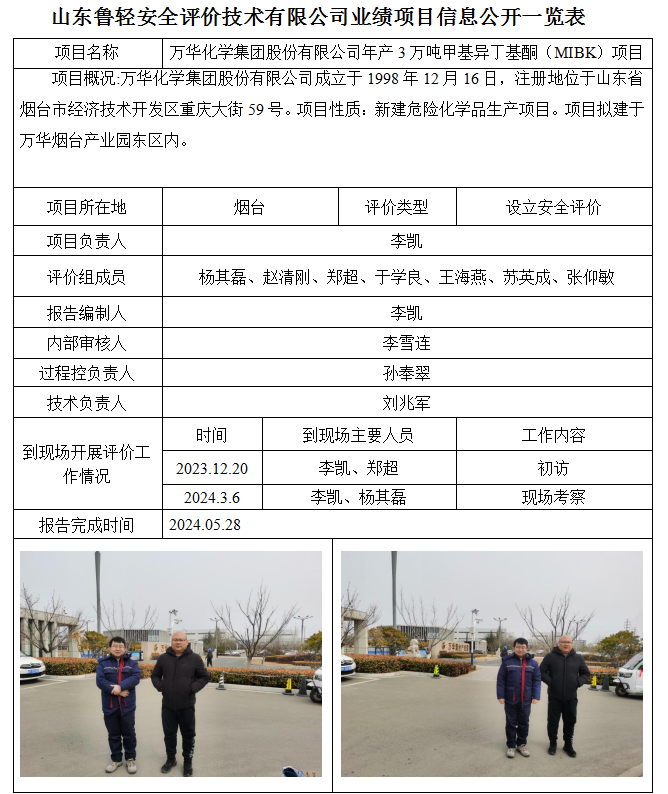 万华化学集团股份有限公司年产3万吨甲基异丁基酮(MIBK)项目