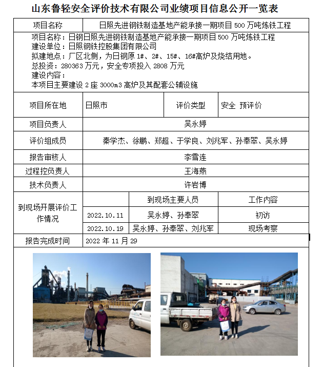 日照先进钢铁制造基地产能承接一期项目500万吨炼铁工程
