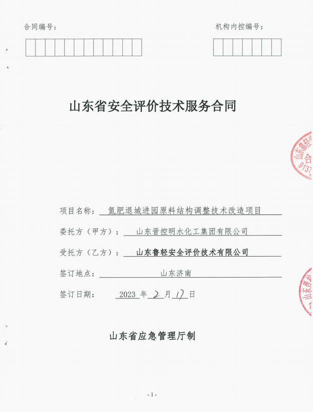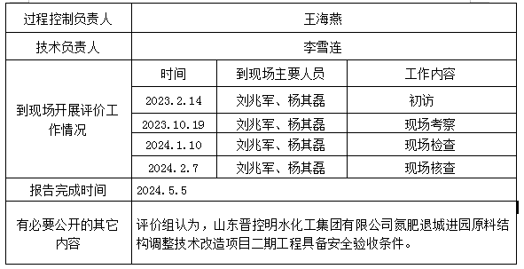 山东晋控明水化工集团有限公司氮肥退城进园原料结构调整技术改造项目二期工程安全验收评价报告