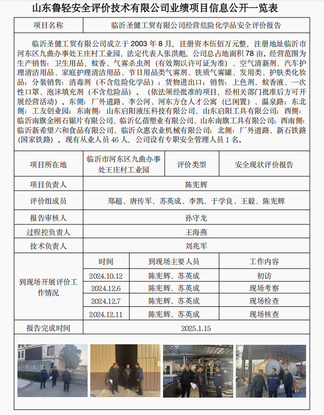 临沂圣健工贸有限公司经营危险化学品安全评价报告