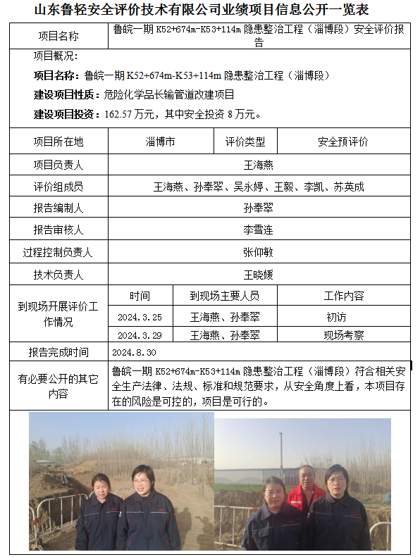 鲁皖一期K52+674m-K53+114m隐患整治工程(淄博段)安全评价报告