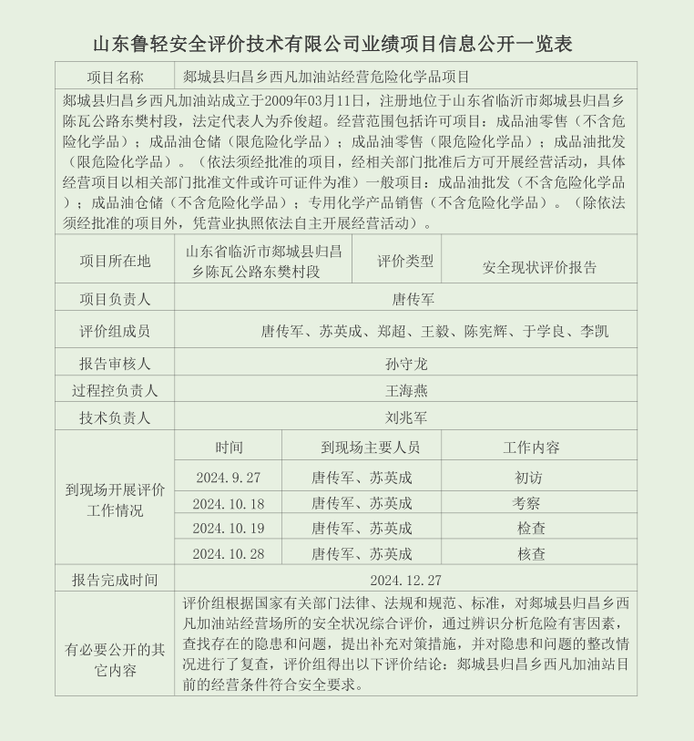 郯城县归昌乡西凡加油站经营危险化学品项目