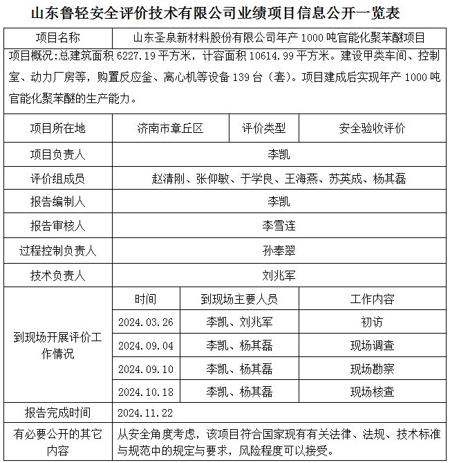 山东圣泉新材料股份有限公司年产1000吨官能化聚苯醚项目