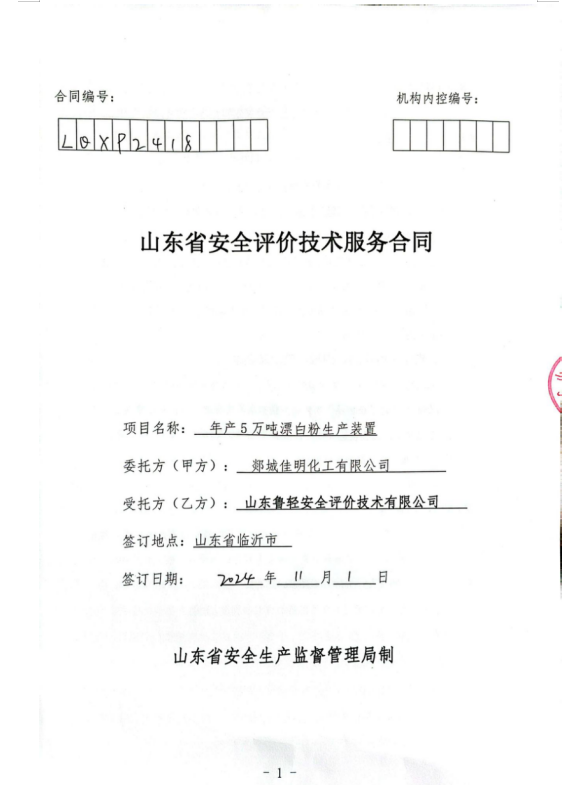 郯城佳明化工有限公司年产5万吨漂白粉生产装置