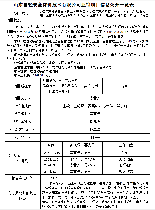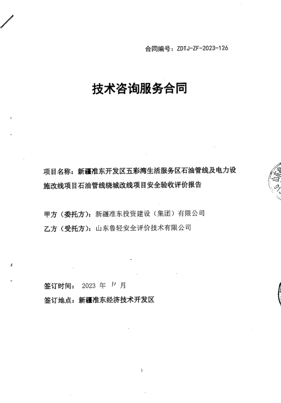 新疆准东投资建设(集团)有限公司新疆准东经济技术开发区五彩湾生活服务区城区石油管线及电力设施改线项目(石油管线绕城改线部分)安全验收评价报告