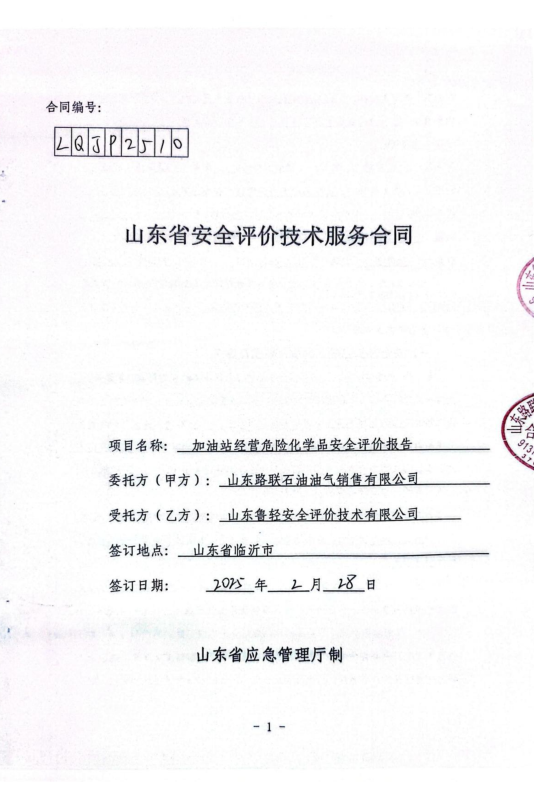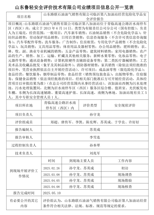 山东路联石油油气销售有限公司临沂第八加油站经营危险化学品安全评价报告
