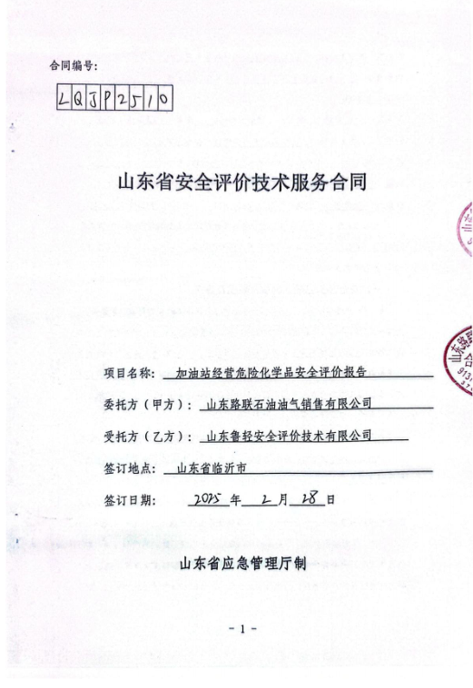 山东路联石油油气销售有限公司临沂第七加油站经营危险化学品安全评价报告