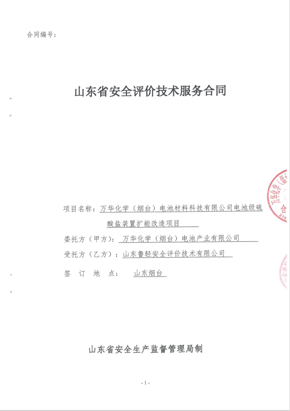 万华化学(烟台)电池材料科技有限公司电池级硫酸盐装置扩能改造项目安全验收评价