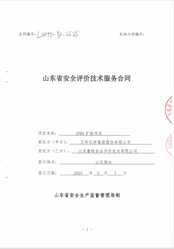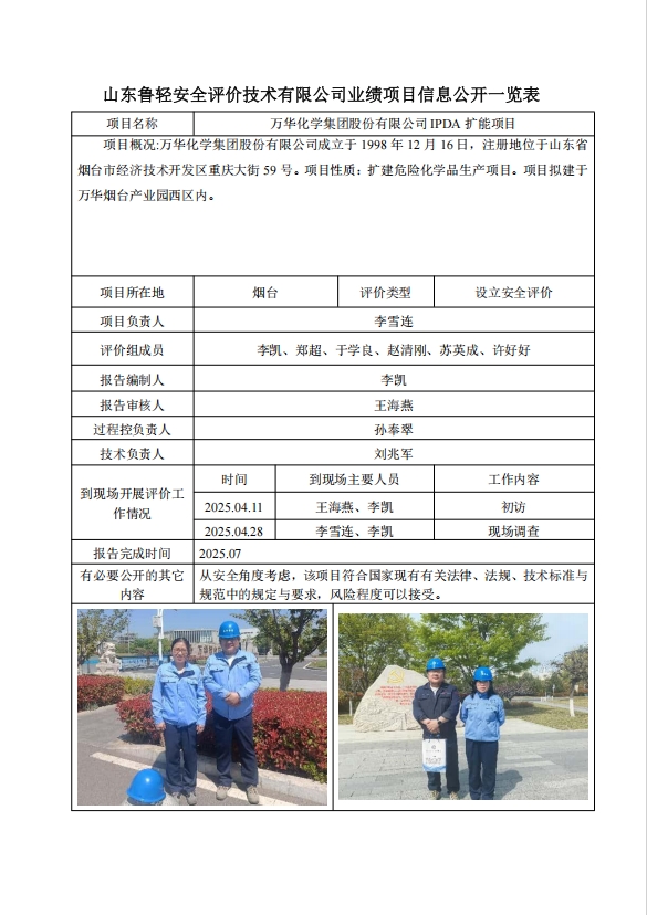 万华化学集团股份有限公司IPDA扩能项目设立安全评价