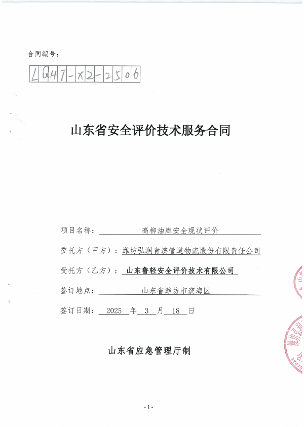 潍坊弘润青滨管道物流有限责任公司(高柳库)仓储经营危险化学品安全评价报告