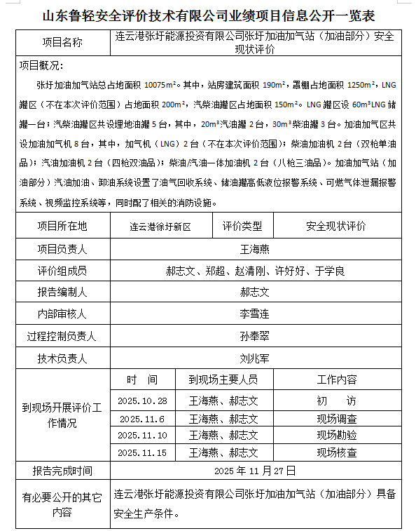 连云港张圩能源投资有限公司张圩加油加气站(加油部分)安全现状评价