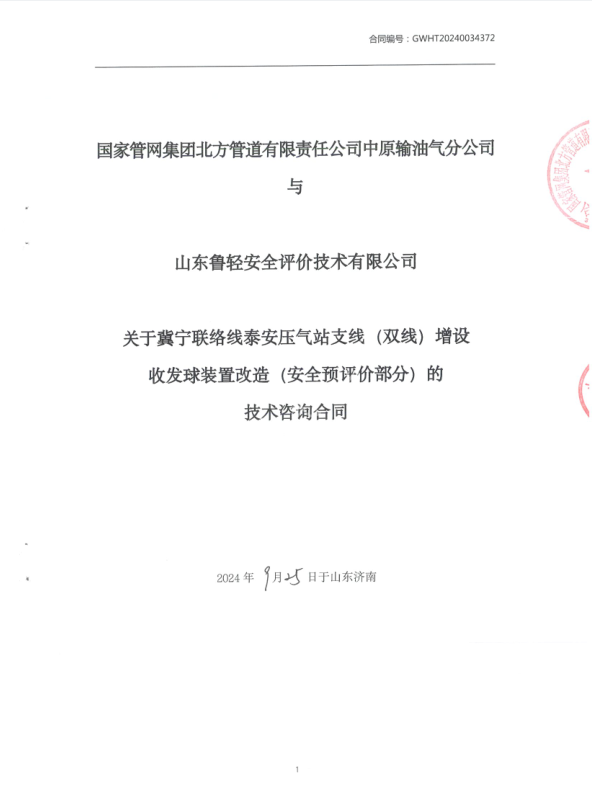 国家管网集团北方管道有限责任公司中原输油气分公司冀宁联络线泰安压气站支线(双线)增设收发球装置改造项目