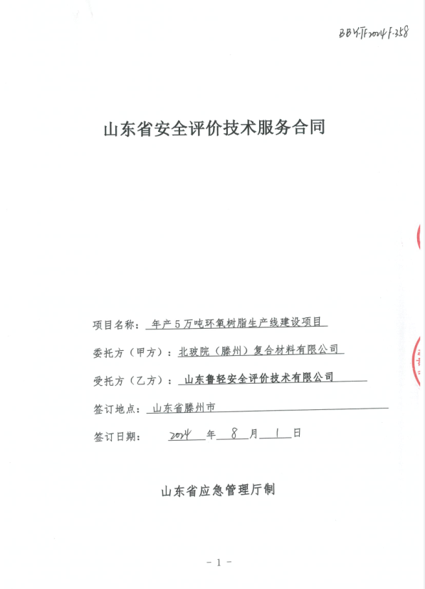北玻院(滕州)复合材料有限公司年产5万吨环氧树脂生产线建设项目安全验收评价