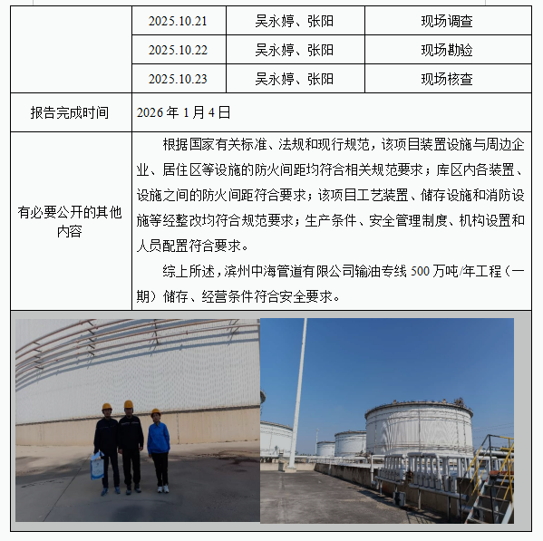 滨州中海管道有限公司输油专线500万吨/年工程(一期)经营危险化学品安全现状评价报告