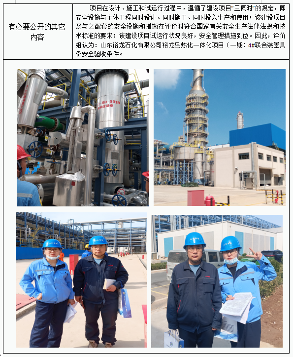 山东裕龙石化有限公司裕龙岛炼化一体化项目(一期)4#联合装置安全验收评价报告