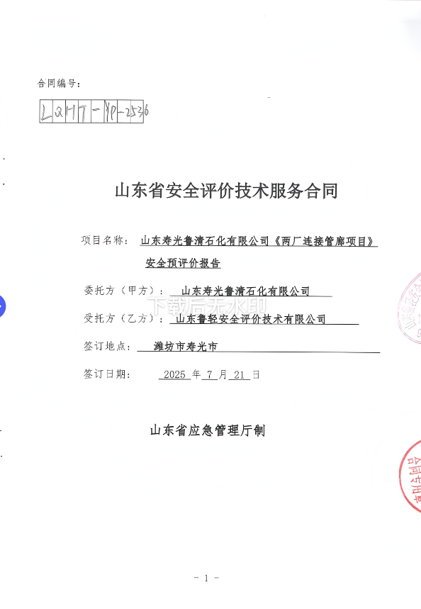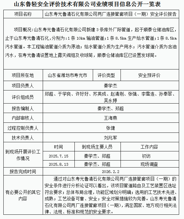 山东寿光鲁清石化有限公司两厂连接管廊项目(一期)安全评价报告